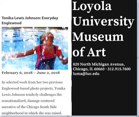 Everyday Englewood – Preceding Tonika's Folded Map exhibit at Loyola University Museum of Art, was her solo exhibition of photographs titled "Everyday Englewood," from Feb. 6th – June 2nd, 2018. Tonika Lewis Johnson's "Everyday Englewood," depicts the Englewood community in which she was raised, assertively challenging ongoing assumptions in her love letter to Chicago. Her photographs assert the divinity of regular people, the people we pass on the street, sit next to on the bus, see in the grocery store and affirm the sanctity of everyday Black existence even while unveiling the cosmology that guides and informs it.