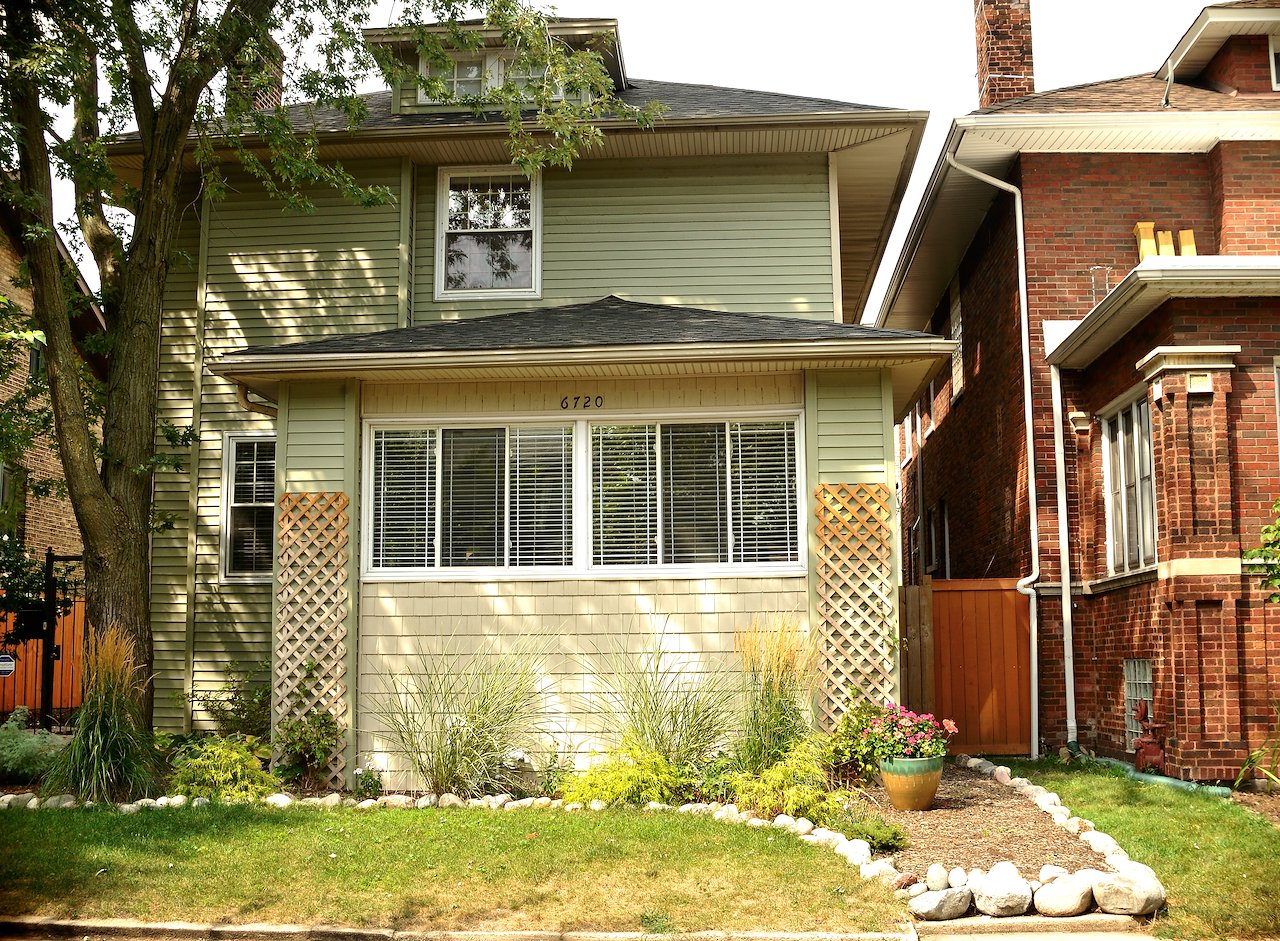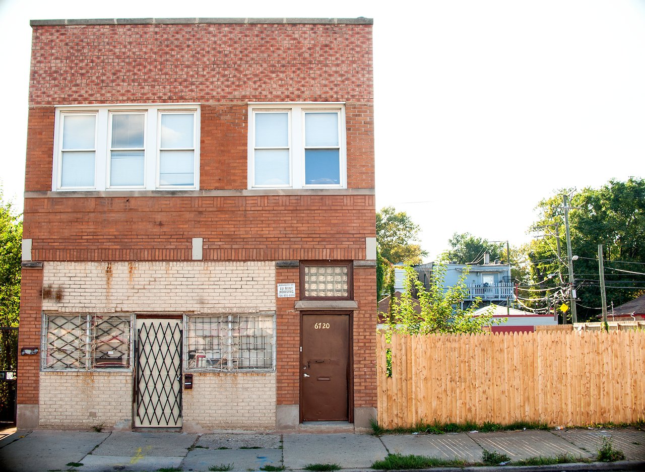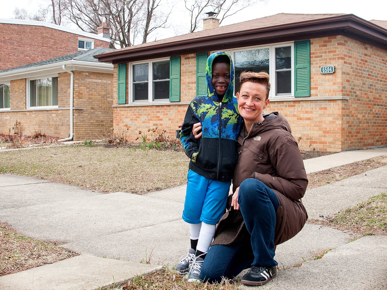 North Side, Edgewater neighborhood resident, Wade, in front of South Side resident, Nanette’s home in Englewood.