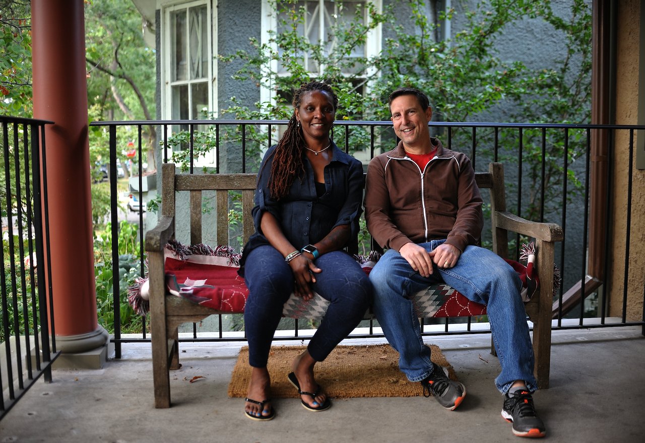 South Side, Englewood resident, Nanette, sitting with Wade on his porch in Chicago’s North Side neighborhood of Edgewater.
