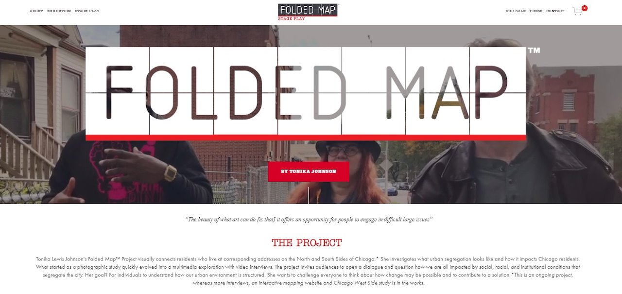 Tonika Lewis Johnson’s Folded Map™ Project visually connects residents who live at corresponding addresses on the North and South Sides of Chicago. She investigates what urban segregation looks like and how it impacts Chicago residents. What started as a photographic study quickly evolved into a multimedia exploration with video interviews of residents. The project invites audiences to open a dialogue and question how we are all socially impacted by racial and institutional conditions that segregate the city. Her goal? For individuals to understand how our urban environment is structured and its impact on our social networks. She wants to challenge everyone to think about how change may be possible and to contribute to a solution. View Folded Map’s website at www.foldedmapproject.com