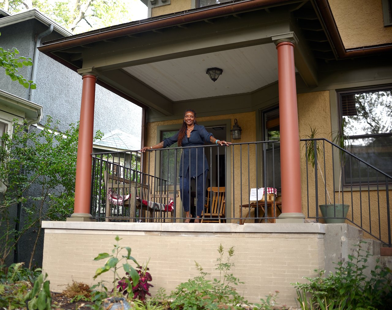 South Side, Englewood neighborhood resident Nanette on Northside resident, Wade’s porch in the Edgewater neighborhood.