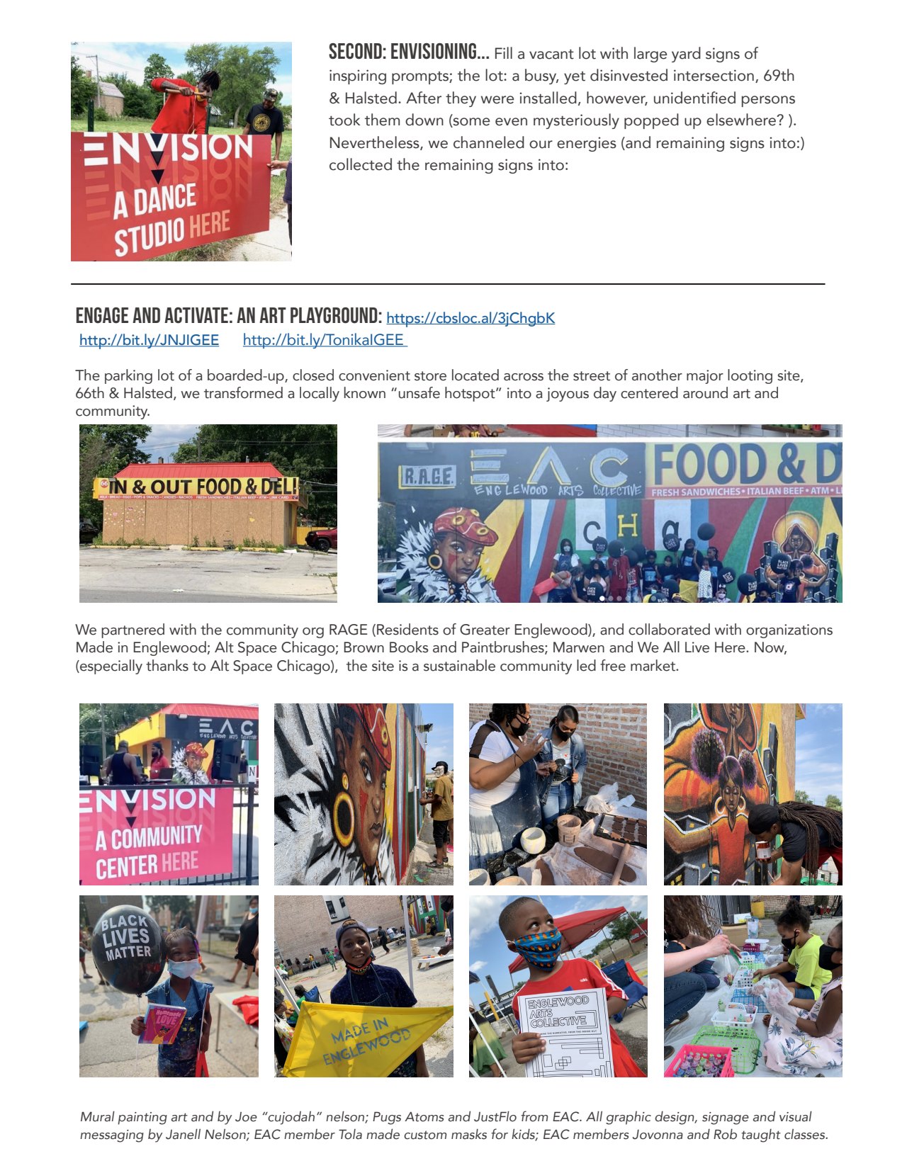August 8, 2020 - Englewood Arts Collective partnered with Resident Assc. Of Greater Englewood (R.A.G.E.) to transform the neglected, boarded up, long time Englewood vacant corner store on the 6600 block of Halsted into a site of beauty, visual healing and envisioning. Friends from Alt_Chicago were invited to contribute by including their free community market, Alt_Market to the space as well as other interactive designs by Made In Englewood and We All Live Here.