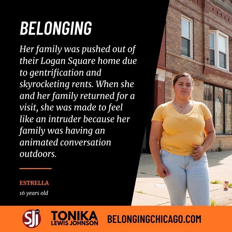 This project was scheduled to be exhibited April 9th at the Chicago Justice Gallery in partnership with UIC’s Social Justice Initiative but cancelled due to the pandemic. Until we can have a socially distanced in-person exhibit, you can view the project in its entirety at www.BelongingChicago.com