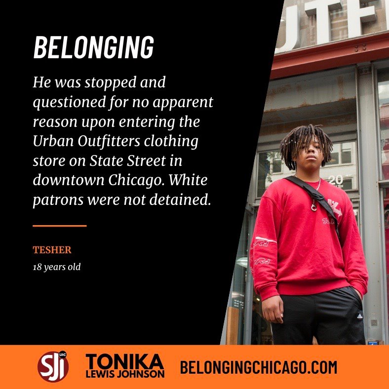 In Belonging: Power, Place and (Im)Possibilities, Tonika Lewis Johnson explores “belonging,” and “exclusion.” The virtual exhibition features interviews with eight Black and one Latinx teenagers detailing their experiences and the ways in which they have been made to feel like outsiders. The images of these young people of color at the location of the offense in Chicago further expose how racial profiling, gentrification, and biased notions of class and crime all fuel attitudes, practices, and policies that create systemic inequality and marginalization.