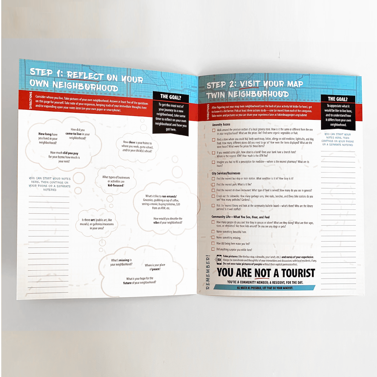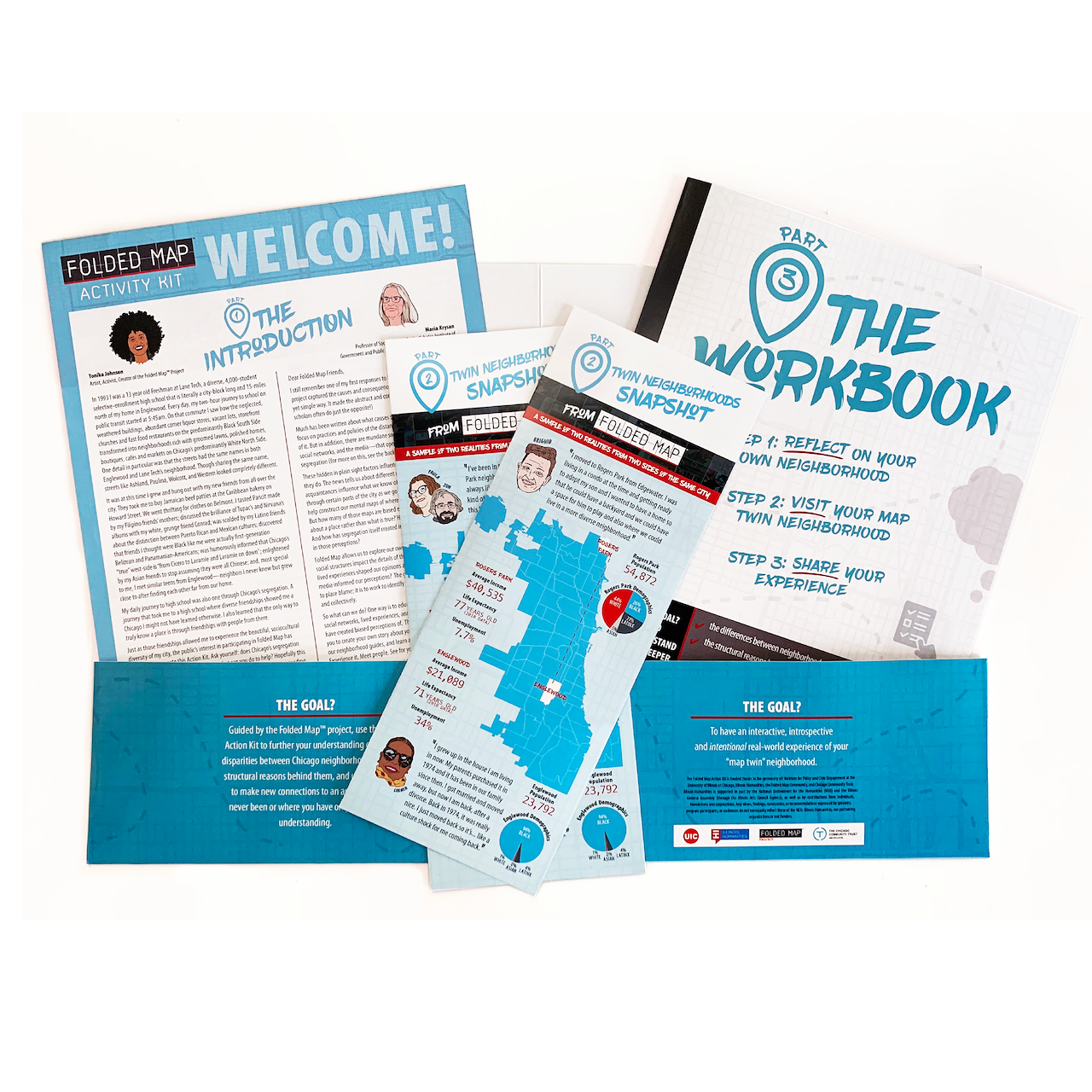 Made up of three parts, the kit comes with a letter from UIC professor Maria Krysan and Tonika, gives background on the Folded Map™ project and a mini workbook for you to keep track of your notes as you unpack your own experience and respectfully embark on some new ones. They worked hard on this—because the most worthy work is worth it.