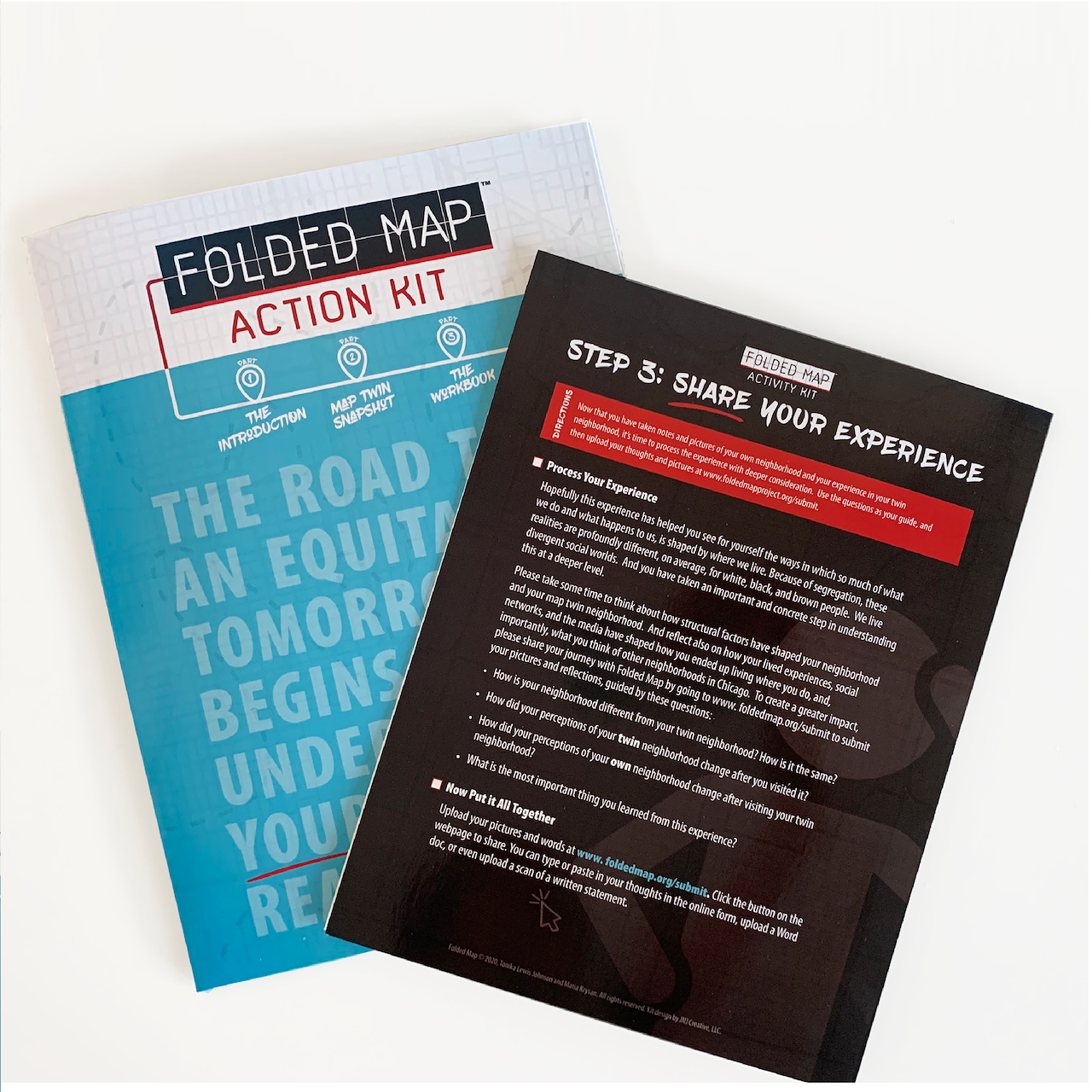 To help all Chicagoans personally experience how differently segregation impacts Chicago’s neighborhoods today, Tonika has created the Folded Map Action Kit of errands she invites people to do in their Map Twin neighborhood then share back your experience. Download the Folded Map activity kit at the following link: https://www.foldedmapproject.com/submit